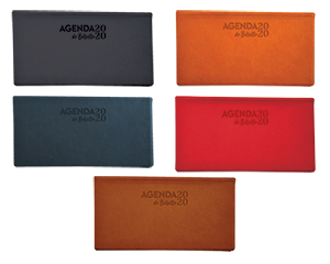 Agenda semanal de bolsillo de 78 hojas (156 páginas). Incluye: planeador anual, planeadores mensuales, calendarios 2019 a 2023, días festivos y fechas importantes, directorio telefónico, notas y separador de listón.