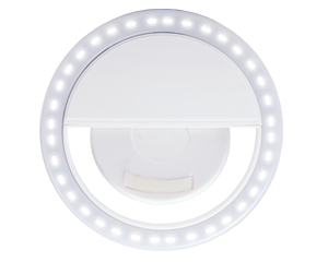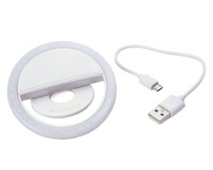 Aro de luz led para tomar fotos en situaciones de poca luz. Cuenta con 3 variaciones de luz. Brinda aproximadamente 60 minutos de luz continua. Incluye cable de carga USB.