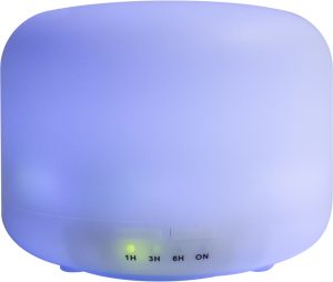 Aromatizador de ambiente con 7 luces que van cambiando de color. Cuenta con un botón que regula el vapor. Con cable USB.