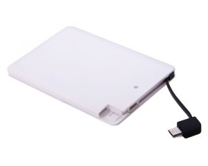 Batería portátil de capacidad 2500 mAh para dispositivos móviles. Incluye adaptador para iPhone y cable para carga