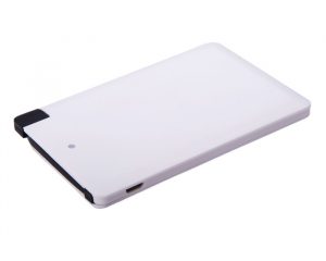 Batería portátil de capacidad 2500 mAh para dispositivos móviles. Incluye adaptador para iPhone y cable para carga