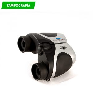 Binoculares deportivos con cristal anti-reflejante, paño limpiador, cordón y estuche.