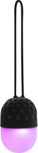 Bocina Bluetooth. Cuenta con diferentes colores y posiciones de luz. Botón de encendido, si se presiona dos veces cambia la intermitencia de la luz o cambiar el color de la luz. 10 metros de alcance.