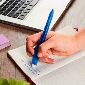 Bolígrafo de gel color azul.