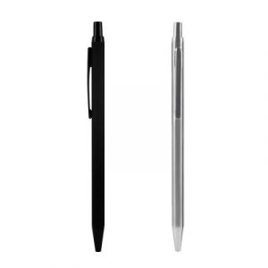Bolígrafo de acero inoxidable con repuesto de tinta gel.