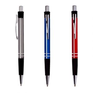 Bolígrafo de aluminio y zona de sujeción de caucho.