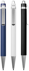 Con cuerpo de color. Clip metálico, pulsador y punta color plata. Tinta negra.