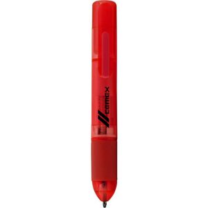 Cuenta con un grip para mayor comodidad en la escritura. Mecanismo de Giro con doble función, Tinta negra y Tinta Roja.