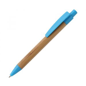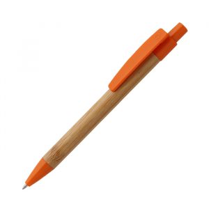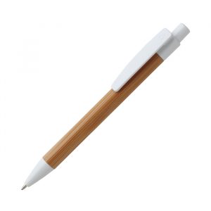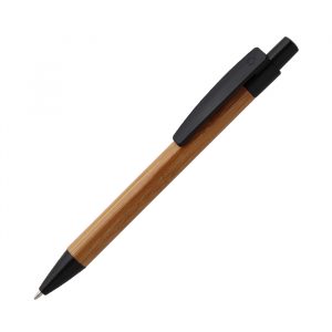 Bolígrafo retráctil fabricado en bamboo con punta y clip de plástico tinta negra.