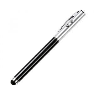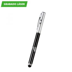 Bolígrafo metálico multifunciones, luz led, señalador láser, puntero touch y tinta negra. incluye estuche individual.