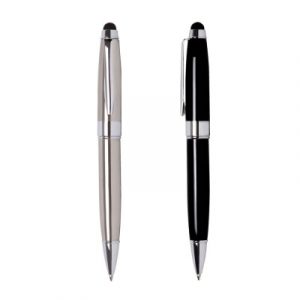 Bolígrafo metálico con mecanismo de giro y función touch. Incluye estuche.