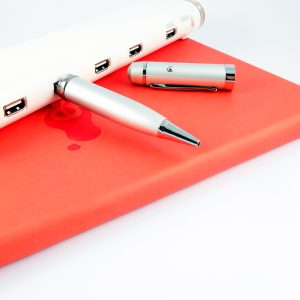 Bolígrafo metálico con memoria usb de 8 gb y señalador láser. incluye estuche metálico.