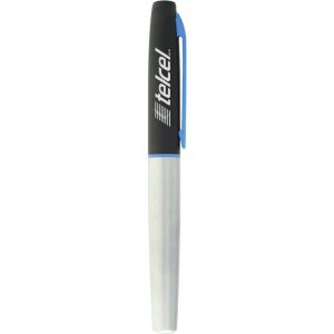 Metálico con tapón que cierra a presión. Cuerpo color plata y tapón negro con detalles rojos ó azules. Escritura de alto desempeño debido a su repuesto japonés tipo roller (a elegir entre tinta negra ó azul). Incluye estuche individual.
