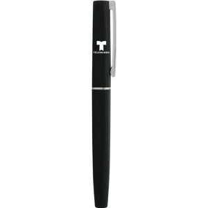 Metálico de cuerpo cuadrangular con tapón que cierra a presión. Detalles color cromo. Suave textura ahulada. Escritura de alto desempeño debido a su repuesto japonés tipo roller (a elegir entre tinta negra ó azul). Incluye estuche individual.