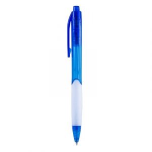 Bolígrafo de plástico translúcido y zona de sujeción.