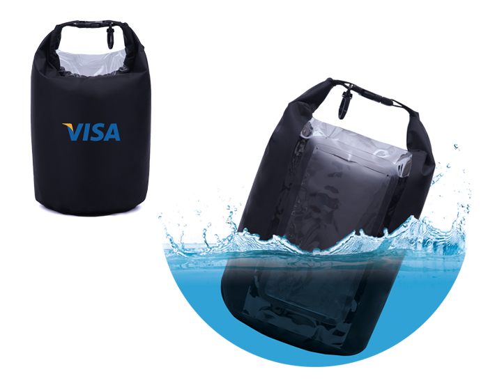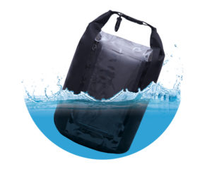 Bolsa repelente al agua, con un compartimento ideal para ropa, compartimento plastificado para teléfonos móviles o accesorios electrónicos. La parte superior se enrrolla de 2 a 3 veces para cerrar y se ajusta con el broche de clip, cuenta con gancho para accesorios.