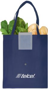Fabricada en Non woven. Bolsa ecológica, posee una solapa color blanco con botón que permite compactar la bolsa.