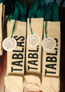 Bolsa para vino para 1 y 2 botellas, fabricadas a la media en loneta cruda y verde. Incluye etiqueta impresa en papel artesanal.