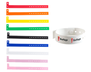 Brazalete plastificado mate, irrompible, con broche de seguridad, se adapta a muñeca.