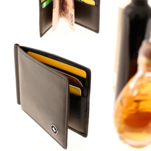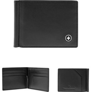Ideal para caballeros que prefieren billeteras delgadas. Cartera de Piel en color negro marca Wagner. Cuenta con 7 compartimientos para tarjetas (uno de ellos en la parte exterior) y clip con excelente resorte para sujetar billetes. Incluye estuche individual.