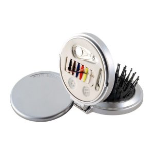 Cepillo con espejo y costurero. práctico para llevar en el bolso