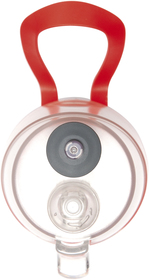 De plástico con tapa plástica a rosca, boquilla deportiva engomada y rociador con botón que emite una suave brisa. Incluye una correa de color que facilita el agarre.