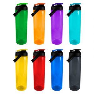 Cilindro de plástico PET con tapa colgante anti derrames, capacidad de 750 ml.