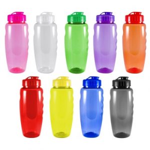 Cilindro de plástico PET con tapa anti derrames y capacidad de 850 ml. Libre de BPA y certificación FDA.