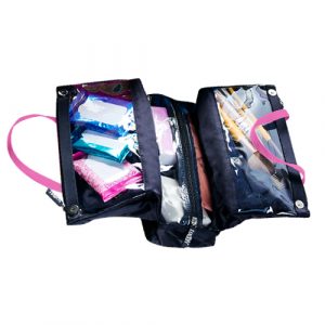 Cosmetiquera color rosa.