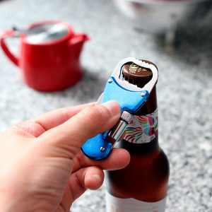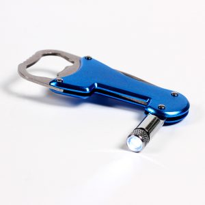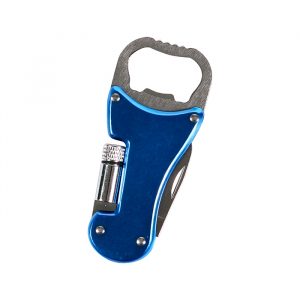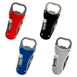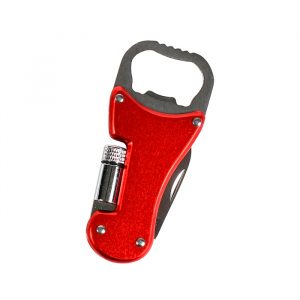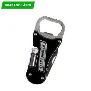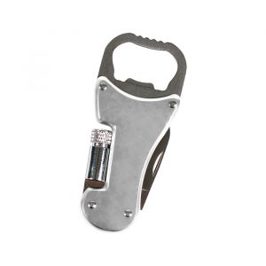 Destapador multifunciones metálico con lámpara y navaja.