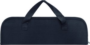 Estuche con manijas que contiene accesorios para la parrilla: tenedor parrillero-Pinza para servir-cuchillo y espatula.