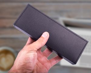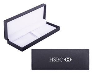 Estuche rígido de cartón para bolígrafos, con interior de terciopelo blanco. Capacidad para 1 ó 2 bolígrafos. No incluye bolígrafos.