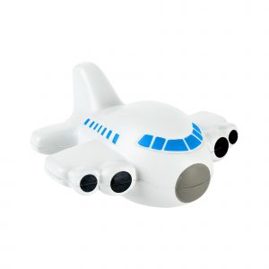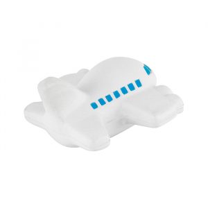 Figura antiestrés en forma de avión, fabricada en poliuretano.