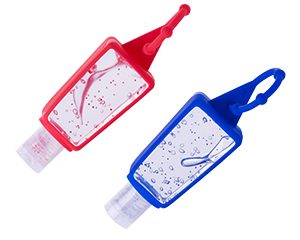 Gel anti bacterial en envase de plástico y funda portátil en silicón. Su formula contiene esferas de jojoba que proporcionan humectación y suavidad. Se puede colocar una etiqueta adherible en el envase o grabar con láser la funda de silicón. Contenido 30 ml.