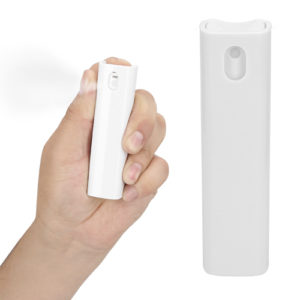 Gel antibacterial en spray, tapa enroscable y estuche de plástico reutilizable. Cap. 15 ml.