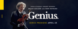 Porta clip de Mustard en forma de cabeza de Einstein para el estreno de la serie Genius de Nat Geo.