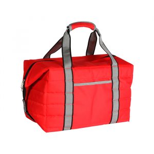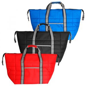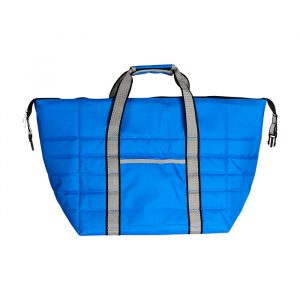 Hielera fabricada en poliéster con bolsa exterior y asas, capacidad de 37 litros.