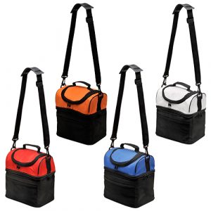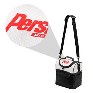 Fabricada en nylon con forro de aluminio, correa de hombro regulable.