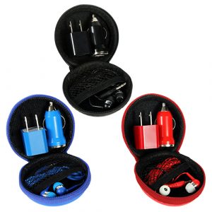Con cargador para auto, cargador de pared y audífonos de conexión jack 3.5 mm. Disponible en colores azul, rojo y negro.