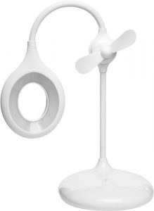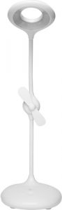 Luz con 16 LED, cuello flexible con rotación de 360°. Ventilador y luz con encendido y apagado táctil. Variación de la intensidad de la luz manteniendo oprimido el botón de encendido. Incluye cable USB de 100 cm aprox, para carga. Funciona con una batería recargable integrada de 1.200 mAh.