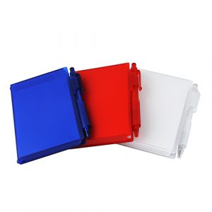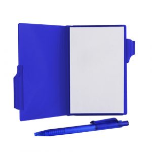 Con 80 hojas blancas y pluma tinta negra. Disponible en colores azul, rojo y blanco.