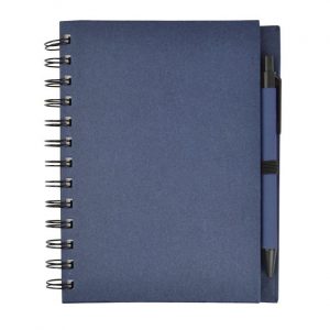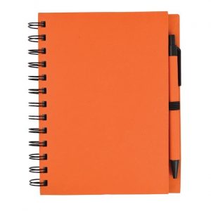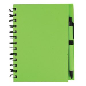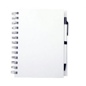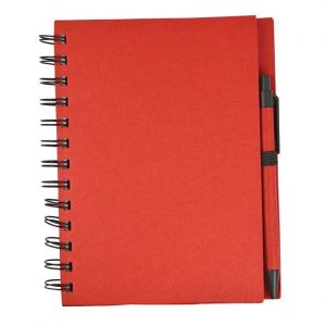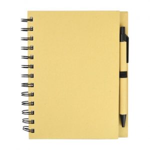 Libreta ecológica 90{4c5f6f294a839bb8d8a1906109704cd63a45952e400595439b764309489d5add} material reciclable. Hojas rayadas e incluye pluma.
