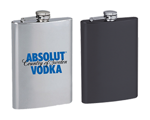 Licorera de bolsillo de acero inoxidable con tapa enrroscable.