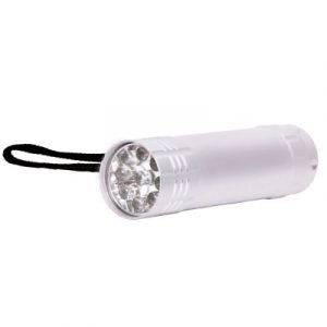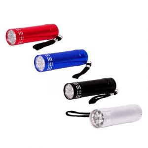 Linterna de aluminio con 9 LEDS. No incluye las 3 baterías AAA.