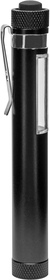 Con botón de goma y clip metálico. Luz led. Base imantada. Funciona con una pila AAA.
