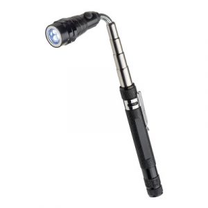 Linterna metálica magnética con 3 LEDS, alargador telescópico y flexible.