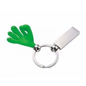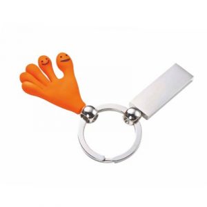 Llavero con placa de metal y figura en diseños de SMILE HANDS fabricada en caucho.
