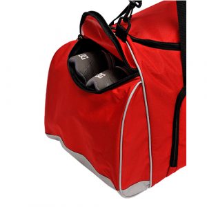 Fabricada en nylon con compartimento para calzado y correa hombro regulable. Disponible en colores azul, azul rey, rojo, negro y blanco.