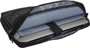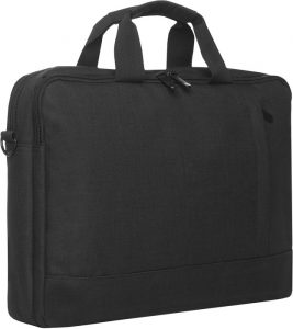 Fabricado en poliester 600D. Capacidad 7 litros. Maletín porta notebook con dos bolsillos con cierre en el exterior. Dos compartimentos, el principal con espacio porta notebook y el segundo con organizador de bolígrafos y bolsillo. Correa desmontable con hombrera de tela acolchada con trabas y regulador metálico.
