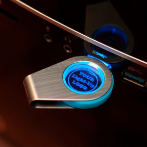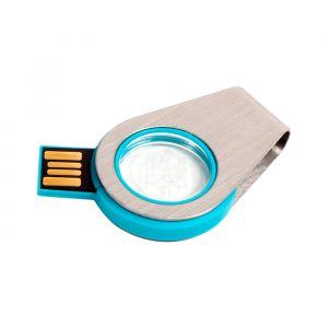Memoria usb de plástico con metal, giratoria con luz y capacidad de 8 gb. incluye estuche de plástico.